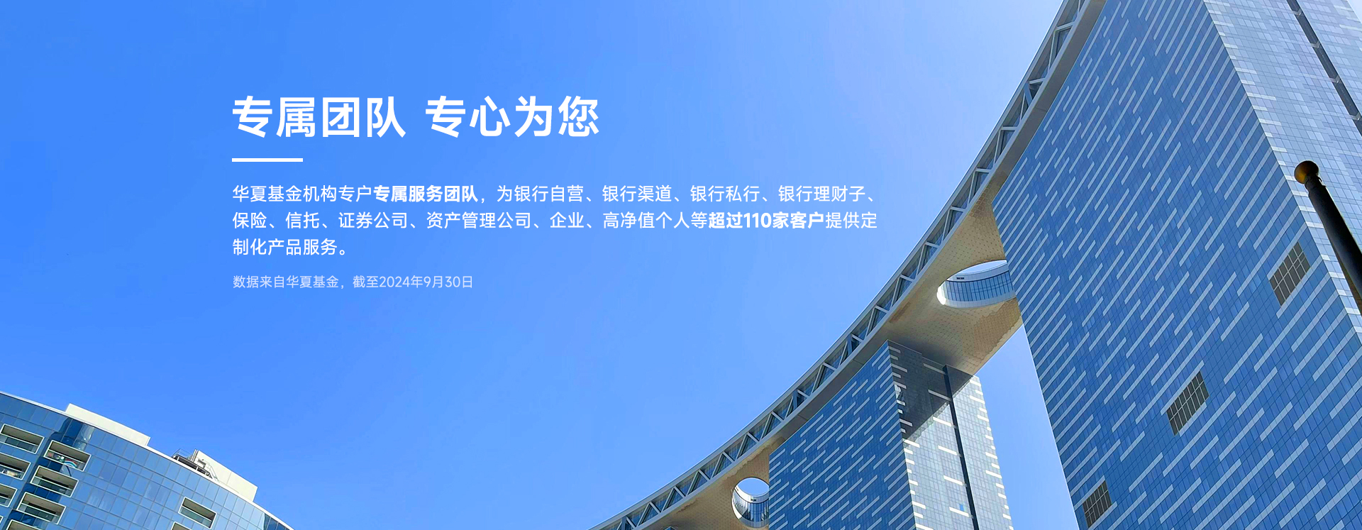 服务机构投资者类型多样覆盖广泛:华夏基金致力于成为机构客户问题的解决者、方案的提供者,服务机构客户超30万户。业务包括全国社保、基本养老金、企业年金、职业年金、专户理财、保险资金受托管理、投资咨询及国际业务。服务的客户包括全国社保,银行及银行理财子,保险、信托、券商等专业投资机构,央企投资平台,企事业单位,非营利组织,高净值个人,以及欧美亚多个国家和地区的主权基金、央行、养老金、银行、资产管理公司、证券公司等。