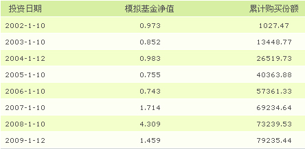 模拟沪深300指数定投模拟沪深300指数定投,从02年1月10日至09年3月31日,每月10日投入1000元: